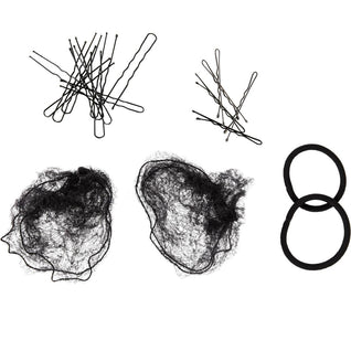 Looking for a complete bun kit to put your hair up? Two bun nets, two elastics, five flat hair clips and ten wavy hair clips: everything you need in a single kit!