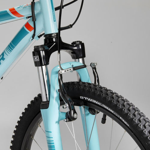 To provide you with maximum comfort, this mountain bike is equipped with a high-rise stem. Your position on the bike is slightly raised so you can better anticipate your trajectory.