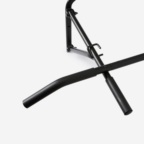 If you want to create a home gym but are short on space, this bar is for you! Durable (max load 130 kg), versatile, and foldable, you can workout without sacrificing space. If you\'re looking for a wall-mounted pull-up bar for outdoor use, we have a bar for that (ref: 8736055). If you don\'t want to mount the bar, you can choose between: - Pull up bar (100 cm ref: 8588491 or 70 cm ref: 8588490) - Pull-up bar for door (ref: 8584559)