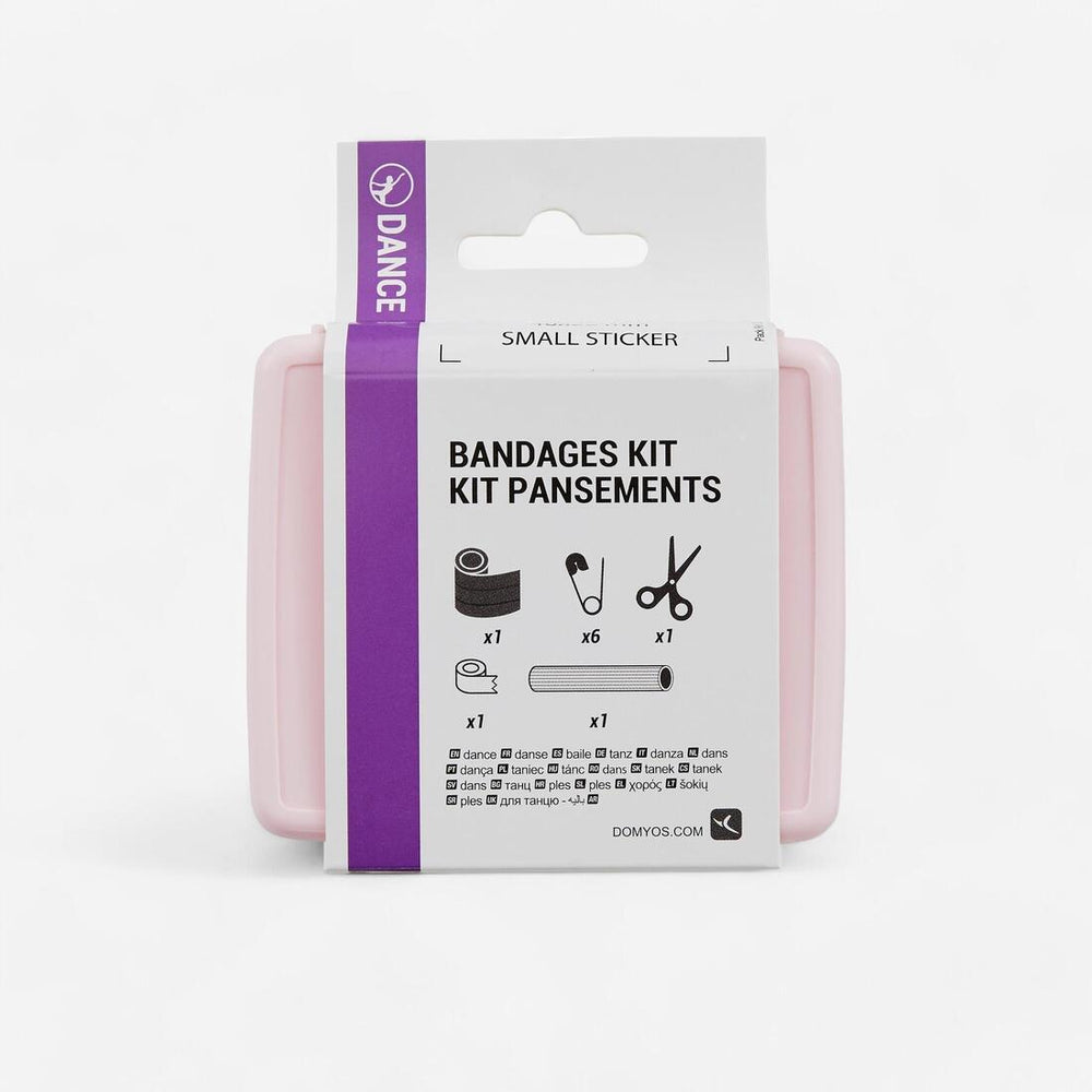 Bandages, adhesives, and scissors are used to treat your feet and especially your toes which are subject to the irritation and rubbing of demi-pointe and pointe shoes. It also includes pins so that you can take up your leotard or attach rubber bands or ribbons to your shoes.