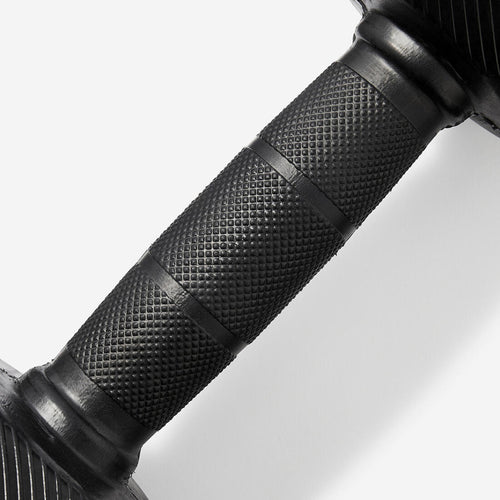 Based on your feedback, we redesigned this dumbbell to give it 6 sides: no more worrying about it rolling on the floor. Its rubber coating provides maximum protection from impacts and dampens noise. Its ergonomic handle, with a non-slip area and a rounded shape, ensures a better grip. Plus, the durable rubber preserves both your dumbbells and your floors, for training with peace of mind.