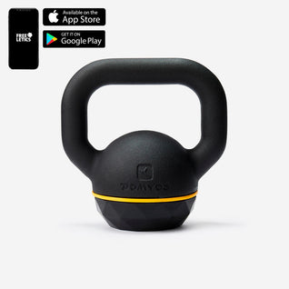 This kettlebell's rubber base is designed to protect from impacts on your floors. What's more, it has an ergonomic handle. Need some ideas? The Freeletics app will guide you!