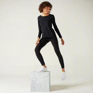 You don\'t need to be a full-on fashionista to put together a great outfit: our cotton T-shirt is a sure bet every time. How? The long sleeves are perfect for summer evenings, autumn days, and winter mornings when layered under a cosy cardigan. The crew neck is flattering while the straight cut is comfy. Finally, cotton promotes ventilation to help keep you dry, which is perfect for sport and everyday wear.