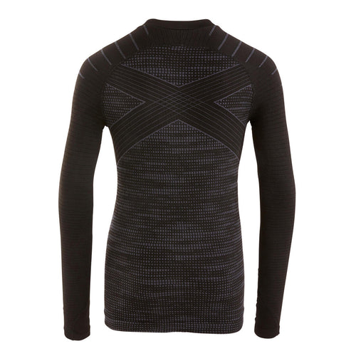 Kids' Football Long-Sleeved Seamless Thermal Base Layer Top Keepdry - Black