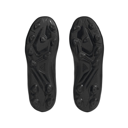 These juniors\' adidas football boots for boys have a comfortable and durable design. Their synthetic upper includes asymmetrical lacing and forefoot stitching to assist with ball control. The tongue is perforated for added breathability, and the anatomically designed heel ensures you stay locked in. Underneath, a versatile outsole gives you stability on firm ground, artificial grass and hard ground. SYNTHETICS. Regular fit. Lace closure Synthetic upper. Breathable perforated tongue. Textile lin.
