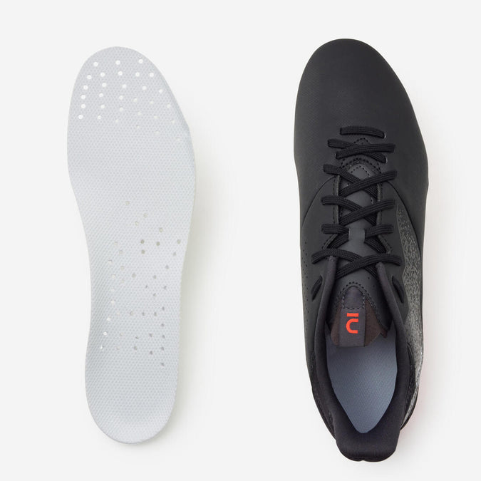 These football boots are the result of a multitude of choices all made with the same goal: to make them the most comfy football boots at this price! Upper made of soft PU on the forefoot, mesh fabric lining on the heel, preformed insole, wide tongue attached at the base that does not twist and keeps the foot nice and snug in place during play. A pronounced contour and raised back of the heel help support your foot and keep it nicely in place.