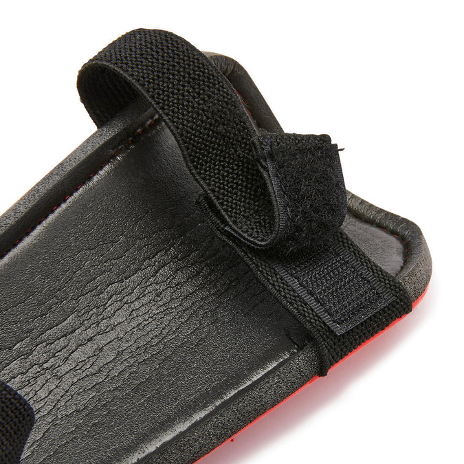 Our design team developed these shin pads by observing young footballers on the pitch, as they trained or played matches. Tackles are part of the game, so to better protect you, our football designers created these shin pads with a plastic shell paired with a shock-absorbing foam pad for impact protection. They meet European standard 13061 which defines shock absorption and the shell\'s level of resistance.