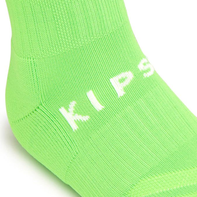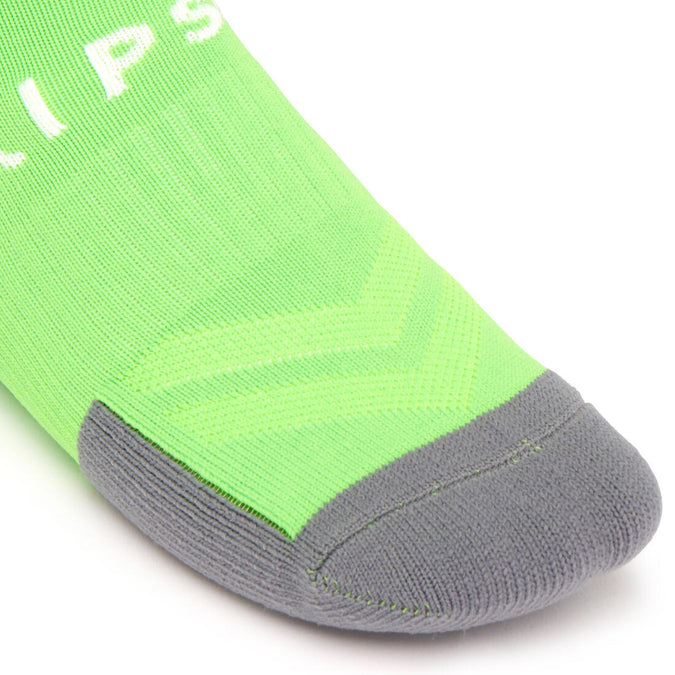 By watching intermediate youth football players on the pitch, our passionate football designers were able to better understand the importance of support in a football sock. Our design teams created the F500 football socks using polyester and elastane thread to prevent the sock slipping around the calf. It also features a specific knit that\'s tighter around the ankle and instep.