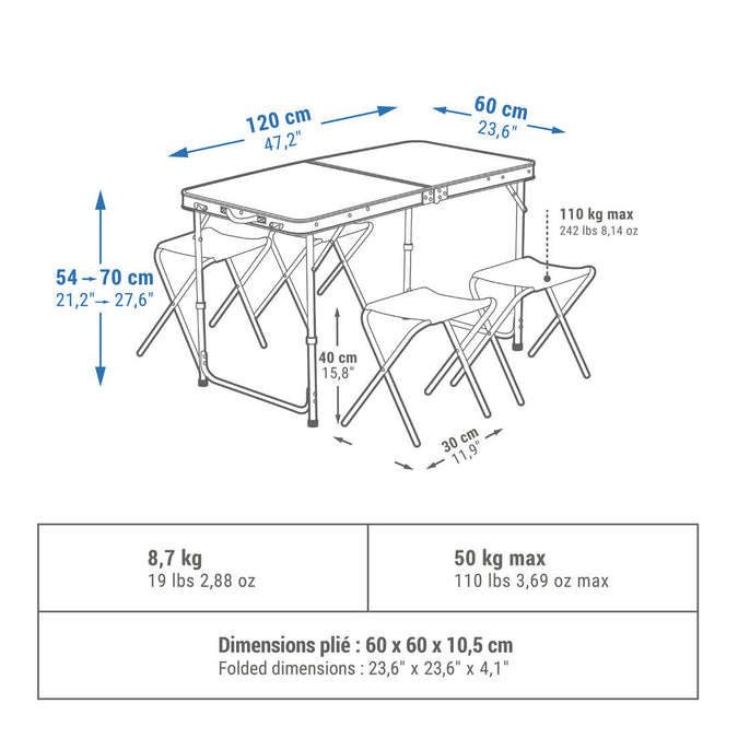 FOLDING CAMPING TABLE - 4 STOOLS - 4 TO 6 PEOPLE