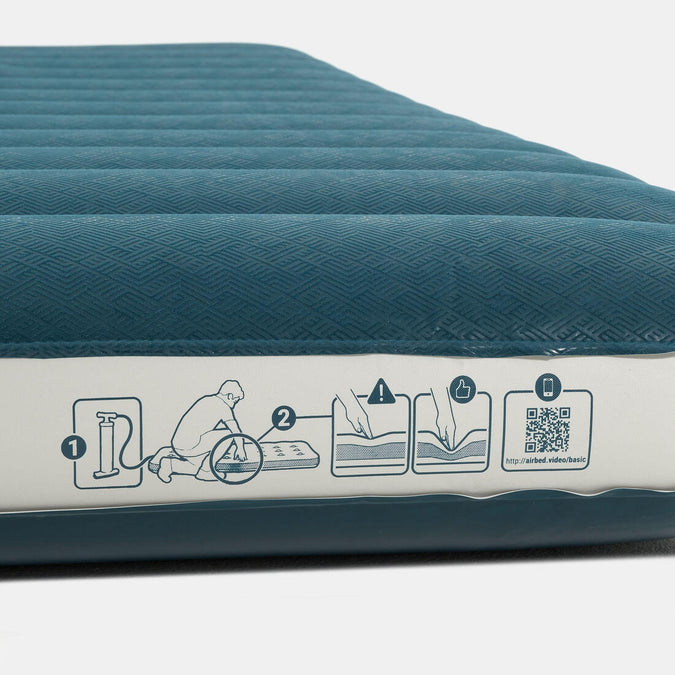 The ideal inflation for this kind of mattress is generally moderate (0.02 BAR or 0.3 PSI), which, when you are sitting on the mattress, allows you to feel the ground under you. Once you lie down, the mattress will fit around your body and therefore provide the best comfort. We recommend using a pump type: Quechua 5.2 L red (8243066) which is our most efficient and leading model.