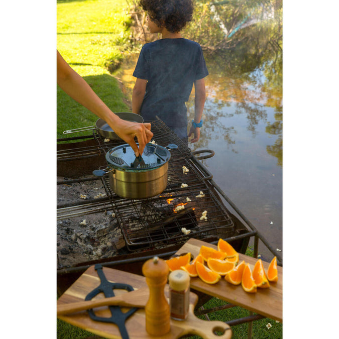 Suitable for use with a wood fire, gas stove or induction hob, this kitchen set contains everything you need to eat (plates, cutlery, mugs). Ideal for enjoying a comforting meal after a day outdoors.