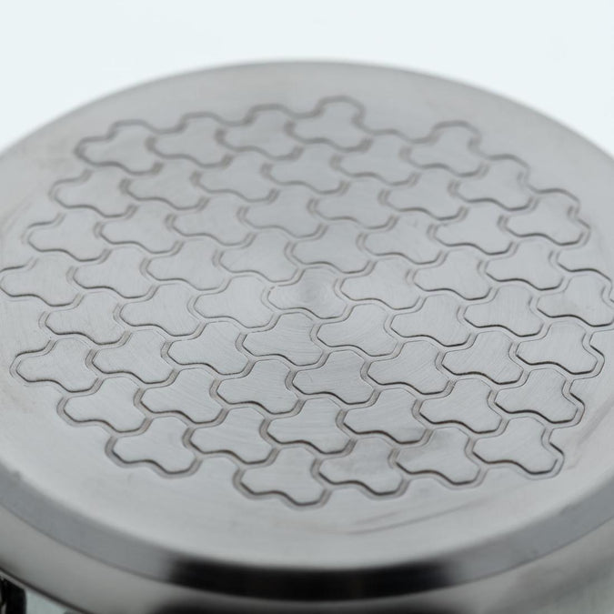 We chose 18/8 stainless steel for its durability, resistance to corrosion and food safety. To make up for its low conductivity, we’ve added a double aluminium base to better distribute heat. Result + heating efficiency and - gas consumed.