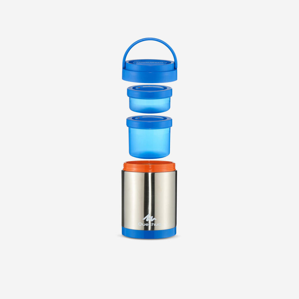 Large opening, screw-on cover, 2 food boxes included. Stainless steel.
