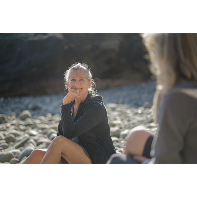 The brushed fabric on the inside of this sweatshirt ensures comfort and warmth during your hikes. The brushing of the knit traps air and keeps the body warm with its insulating power. You can adjust the heat using the zip opening on the sweatshirt when you are walking.