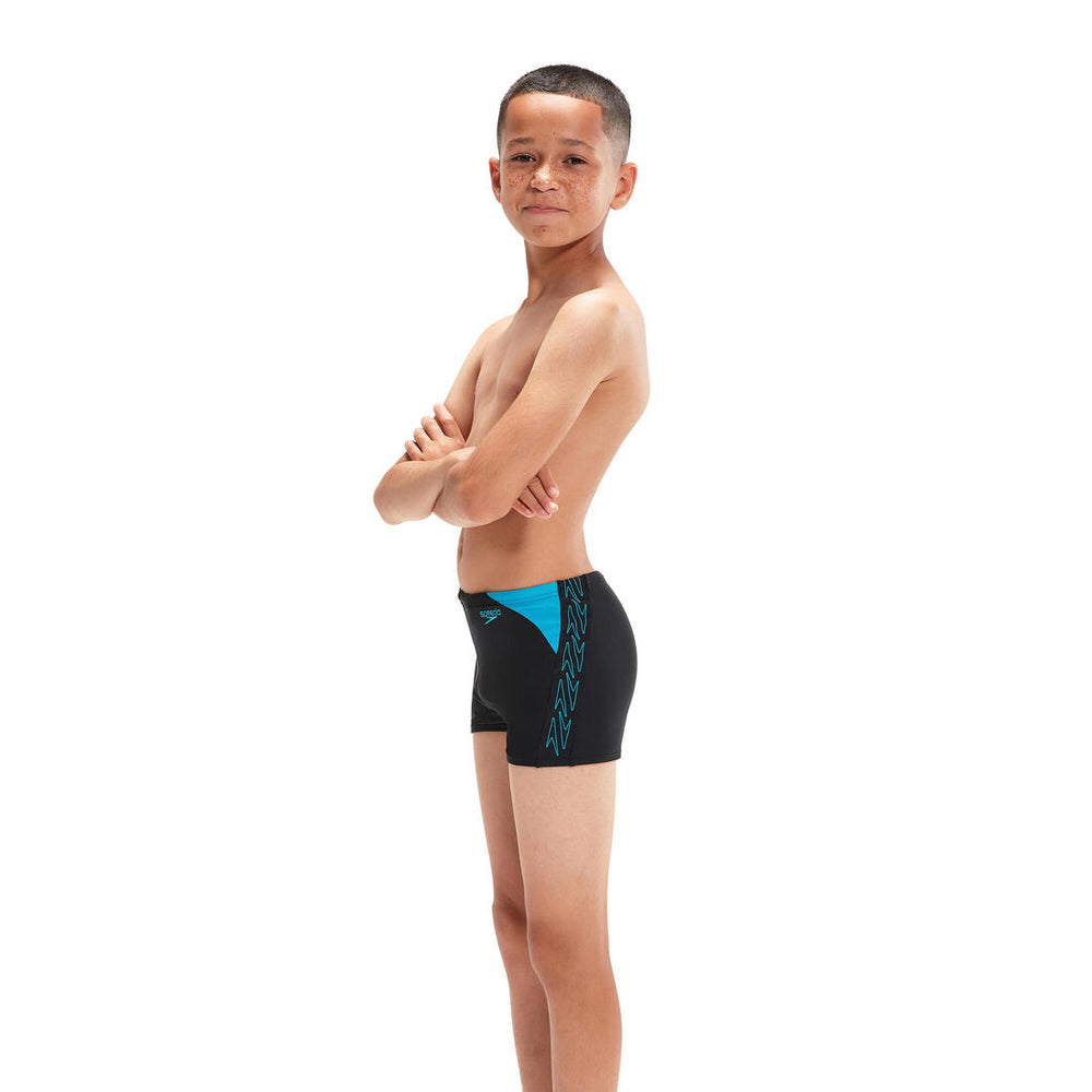 Iconic Speedo style. Sleek-look aquashorts, sharing the same great fit as our Essentials swimwear, the Splice Aquashort features an eye-catching contrast panel and Speedo logo print. Lined at the front for comfort and modesty, it includes an internal drawcord to allow young swimmers to adjust the fit. Soft and stretchy fabric make it ideal for regular swimming, while our shape-retaining Endurance10 fabric with Creora HighClo ensures it fits like new for longer.