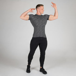 Men's Short-Sleeved Crew Neck Weight Training Compression T-Shirt - Black