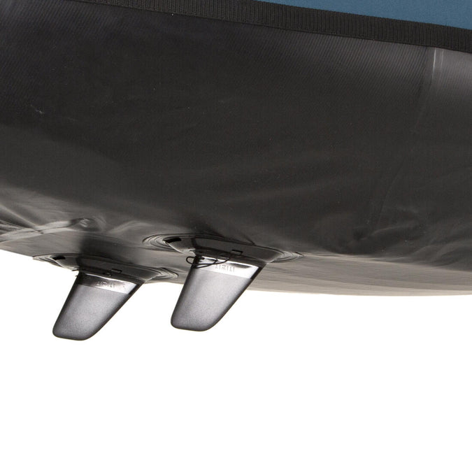 Inflate the floor, then one of the side tubes, then the second one to 50%. Check the overall positioning of the chambers. Then fully inflate it without exceeding 0.1 bar (1.5 psi). DO NOT OVERINFLATE! Close the valves well. Install the 3 skegs, unless using on a river containing little water. In the event of EXTREME HEAT, slightly deflate the kayak out of the water to avoid overinflation, which could damage the kayak. Do not leave inflated in direct sunlight: risk of overinflation