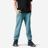 Regular cut, close-fitting at the waist and hips.The cut is straight as far as the ankles, which are elasticated.