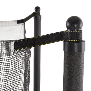 PROTECTIVE CUSHIONS (phthalate-free PVC) on top of the springs and metal frame (30 mm-thick on the frame & 20 mm on the springs) Polyethylene SAFETY NET: zip closure to guarantee complete safety. Soft, polypropylene JUMPING SURFACE with anti-UV treatment for optimal durability outdoors. Hot-dip, galvanised steel METAL FRAME, with anti-corrosion treatment Frame tubes: diameter = 38 mm / Thickness = 1.35 mm 48 springs