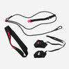 Cet ensemble n'est pas pensé pour un usage polyvalent. Les pieds sont inutilement attachés ensemble, la boucle qui les relie est trop petite, suffisante pour y glisser le mousqueton mais pas l'attache rapide. Les attaches rapides sont mi-rouges, mi-noires, ce qui n'a aucun sens et n'est pas pratique. La ceinture en velcro n'est pas conçue pour une attache par le dos et je doute de sa tenue dans le temps. La sangle trop grande pour une attache au tube d'escalier, trop courte au skimmer. Rapport qualité-prix très moyen.