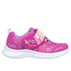 \"Synthetic and mesh upper with a musical print. Cushioned comfort insole. Pull-on style with stretch laces and an instep strap. Lightweight athletic supportive midsole. Flexible traction outsole. Skechers® logo detail\".