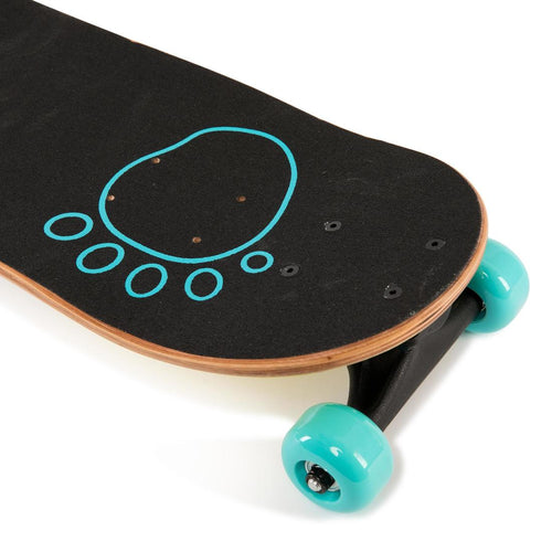 To make this skateboard better suited to children aged 4-7 years, it features a wider wheelbase: the deck is lower and won\'t exert a lever effect on the nose and tail. We chose ABEC3 bearings for a smooth ride and softer bushings to make learning to turn easier. And to make sure this skateboard grows with your child, it features holes for moving the trucks to a normal position.