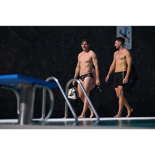 This large mesh pool bag allows you to carry your swimming equipment (kickboard, pull buoy, hand paddles, etc.) around the swimming pool. The practical side: it dries in no time.