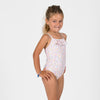 An original, colourful 1-piece swimming costume designed for little girls discovering the pleasures of the water, in the pool or outdoors.