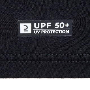 This UV-resistant T-shirt helps limit rubbing and chafing due to contact with the surfboard or bodyboard. It can also be used under a wetsuit to limit chafing, particularly around the neck and armpits. Reduced chafing from paddling movements has been proven for sessions of one hour. If you plan to surf for more than one hour, the UV top 500 will be a more suitable choice with its seamless panels under the arms.