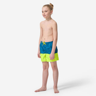 Boys’ surfing swim shorts with pockets - 100 Stories blue yellow