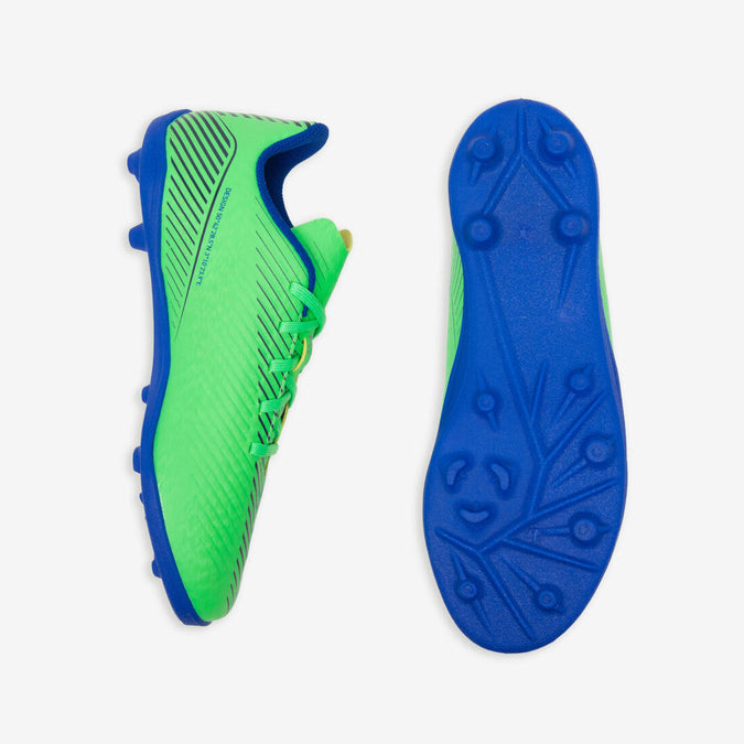 Kids' Lace-Up Football Boots 160 MG - Navy Blue/Green