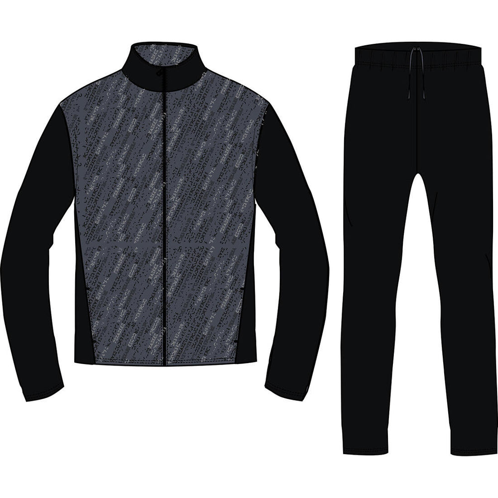 This tracksuit comprises a pair of bottoms and a zip-up jacket with unzipped pockets.
