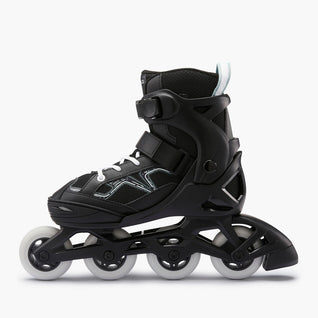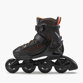 The lighter composite plate makes it easy to learn. It provides a comfy glide. The 70 mm 80A wheels and ABEC 3 bearings offer a good compromise between glide and handling. Our skates are kitted out with a classic rubber brake that you can fit on either the right or the left foot. Spare stoppers are available in stores.