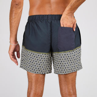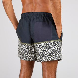 Swim shorts with elasticated waistband and drawstring, short cut for good freedom of movement. Anti-chafing inner briefs. 3 pockets including 2 side pockets. Stays securely in place in the waves.