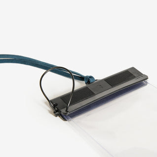 Slide the clip. Unfold the film. Insert the telephone by pulling apart the sides. Refold the film. Replace the clip carefully all the way through (you should hear the \"click\"). Check the pouch\'s water resistance regularly using a paper towel.