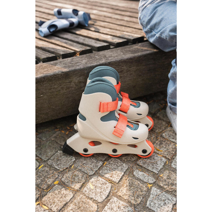 A perfect inline skate for beginners aged 3 and over!A new inline skate design for lighter weight thanks to its 3 wheels.Adjusts to 3 sizes.