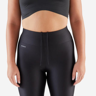 Main fabric component has 13% elastane for good elasticity and compression. Wide waistband with adjustable cord to avoid legging falling down when you\'re running.