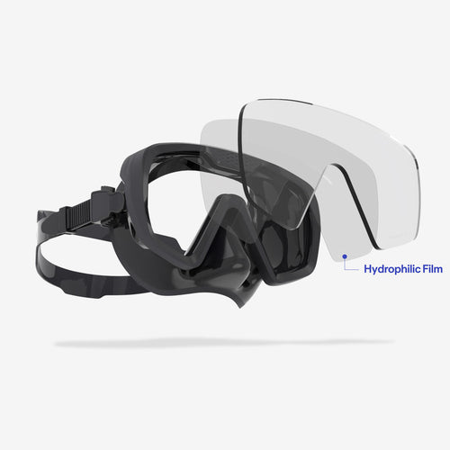Enjoy snorkelling and diving without fogging thanks to the innovative hydrophilic film laminated directly onto the glass.