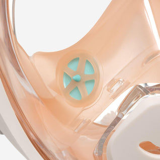 Pay attention to sand! Avoid letting your full-face snorkelling Easybreath mask come into contact with sand as this can scratch the lens of the mask. If sand is present, do not use force to clip the snorkel into place. Rinse the snorkel and mask before connecting them. Sand can also clog the float valve inside the snorkel. Rinse the snorkel vigorously or use a key that you can fit through the rear vents of the snorkel to unblock the float valve, then rinse the snorkel.