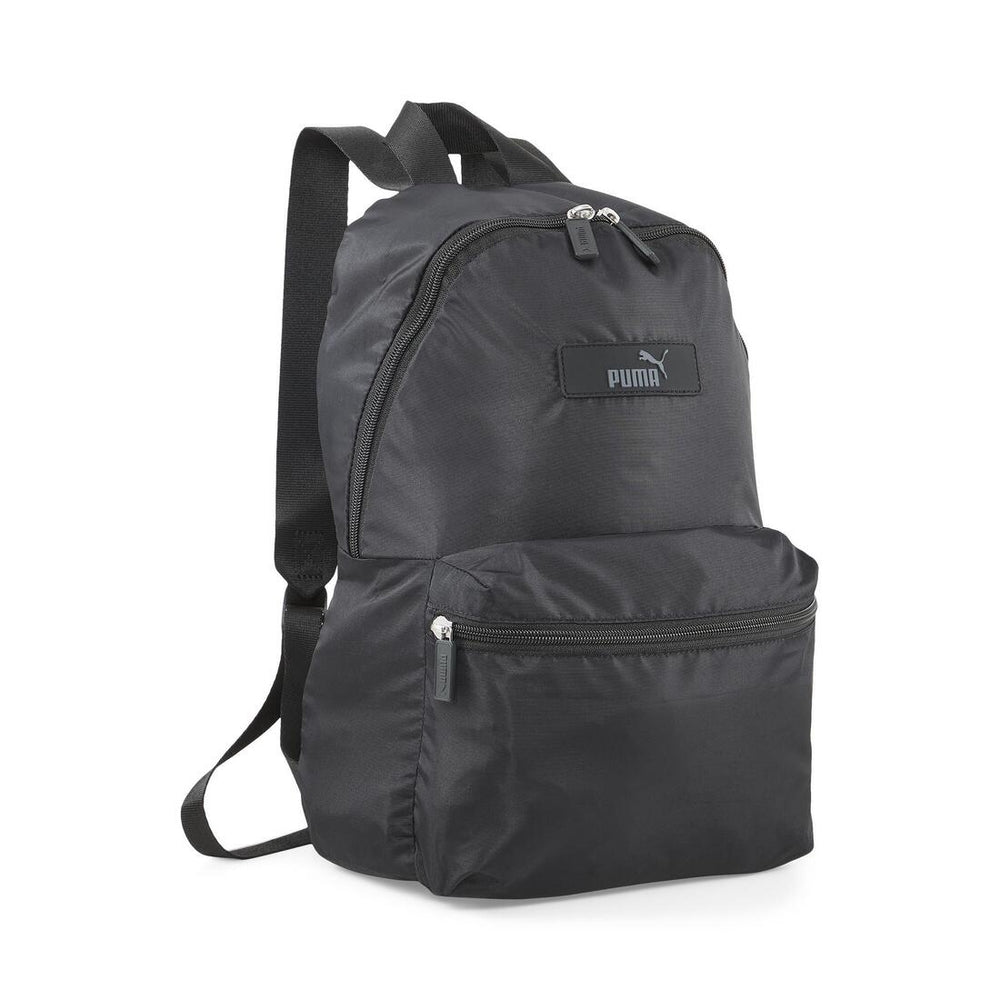 Two-way zip opening into main compartment. Exposed front zip pocket. Adjustable webbing shoulder straps. Webbing carry handle. 150D PES lining with heat embossed PUMA wording. Internal slip-in compartment. PUMA branded zip puller. Squared silicon logo patch with PUMA No.1 Logo on front. 25 cm x 12 cm x 35 cm, 12 L.