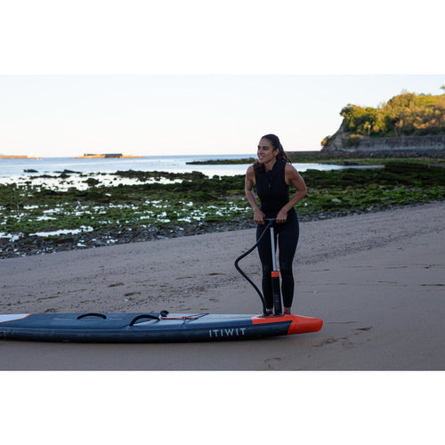 The double-action high-pressure pump is designed to easily inflate SUPs or kayaks to pressures of up to 20 PSI. DEFLATE mode can also be used to optimise the storage of the inflatable