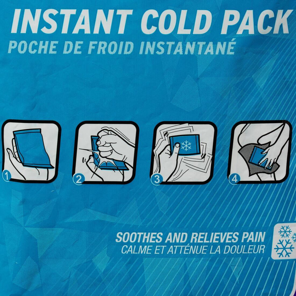 To turn the pack cold, simply hit it forcefully in the centre and shake it. It will provide you with around 20 minutes of cold. Always apply a cloth between the pouch and the area to be treated. Single use. Throw away after use.