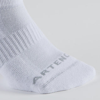 The plush loop zone is thicker and softer, offering greater durability and comfort.These Artengo tennis socks feature plush loop fabric that envelops the foot for maximum comfort and durability. A ventilation zone made of knitted piqué is located on the top of the foot and helps it breathe more easily in the shoe.