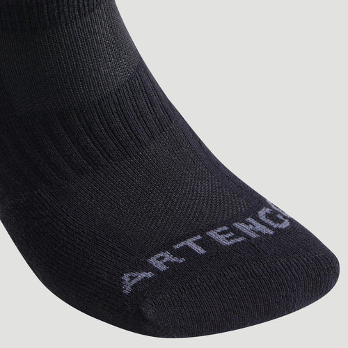 These low-cut Artengo sports socks have an ankle tab above the heel to improve comfort and keep blisters at bay. This is what we call the \"edge\" system.