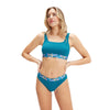 Whether poolside or on the beach, this teal Deep U Back bikini brings a touch of sporty glamour to your surroundings and includes a stylish leaf-print waistband and underband.