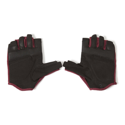 Easy to put on and take off, these burgundy weight training gloves have a grip pad on the palm to improve your grip on bars and dumbbells.