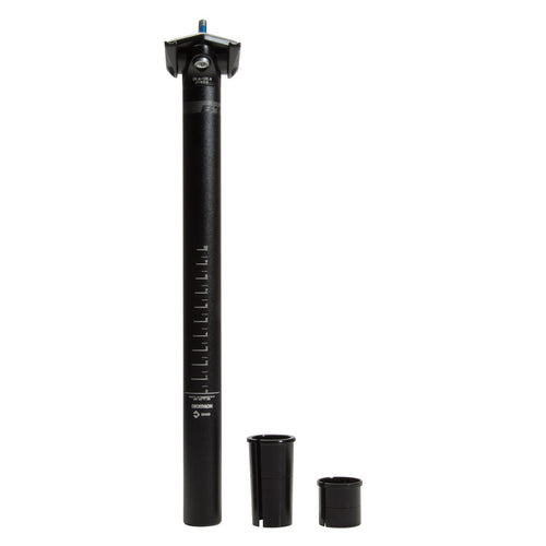 Black seat post for 27.2mm frames with 29.8mm to 33mm adapters.