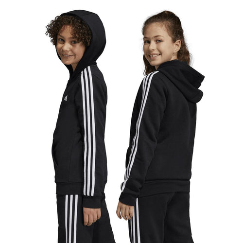 A perfect blend of comfort and style, the unisex Essentials 3-Stripes Fleece Fullzip Hoodie is an accessible wardrobe staple. Created with a regular-fit and made from a knit combination of 78% cotton and 22% recycled polyester, it offers both sustainability and softness. Regular fit. Full zip with hood 78% cotton, 22% recycled polyester fleece. Kangaroo pockets.
