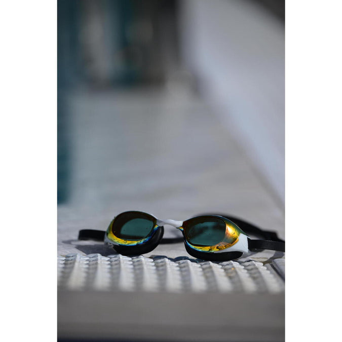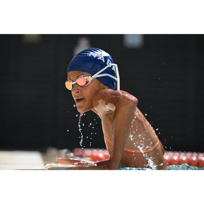 These swimming goggles fit the morphology of your face without needing to be overly adjusted. Goggles that are too tight can cause discomfort, leave marks and even create water inlet holes. It is not necessary to press against the lenses with your hands, a light suction effect is usually enough for swimming sessions without water inlet holes. The straps ideally should rest 2-3 cm above your ears. This position will optimise the grip and comfort of the goggles.