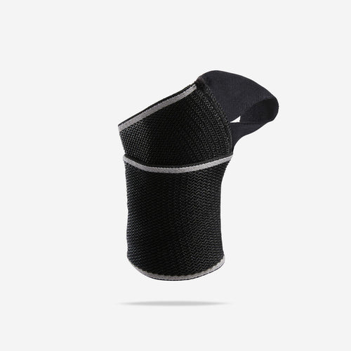 This wrist support can be worn during all your physical activities.Easy to put on with its adjustable positioning over the thumb, it\'s comfortable as can be with its breathable material and hand-embracing shape.Suitable for the left or right wrist.